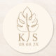 Custom Monstera Monogram Save the Date Logo Round Paper Coaster