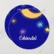 A custom celebration invitation with script and block letters and elegant vintage art of a colourful glowing moon and stars against a blue sky etching. Customise it to change fonts, add your logo, and more, even save your design for later.