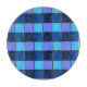 Refresh your space with this cool and contemporary "Blue Mosaic" pattern. The artwork features a grid of squares in a monochromatic palette of navy, royal blue, and cyan, creating a look reminiscent of classic swimming pool tiles, retro 8-bit video game graphics, or a modern patchwork quilt.