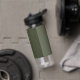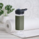 Elevate your event gear with this custom water bottle featuring a modern vertical split in moss green: one side smooth and solid, the other subtly textured with a fine-speckled effect. Perfect for brands and buyers seeking a fresh take on earthy elegance, this bottle delivers a refined look that stands out without screaming.