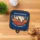 This awesome sunset over rocky mountains and forest trees in nature makes a great image for a custom pot holder for a family log cabin in the woods. Just add your own personalised monogram and established date on the blue house gift.