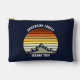 This cool orange vintage sunset over rocky mountains in nature makes a great image on a cute retro navy blue cosmetic bag for a mountain hiking trip or camping vacation for a family who loves to spend time outdoors and the wilderness.
