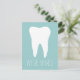 Custom moving postcards for dentist practice or dental clinic. Custom move text; We have moved! Add your new address on the back. Modern cards for new home and business location. White tooth logo.