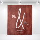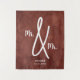 Boho Mr. and Mr. gay wedding backdrop personalised with their surname or names and the event date or established year. Design with a terracotta style background with an elegant but modern style for a wedding party, reception, or for ceremony wall decorations.