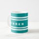 Change background colour by clicking the "Customise" button below mug, then click "Edit">>"Background" and select a colour.
