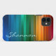 Custom multicolor stripe iPhone 5 case. Vibrant and striking rainbow ribbon stripe design featuring an array of the many shades of red, green, blue and yellow. Personalise it with your name or any other text you'd like.