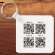 Custom withe minimalist multiple four qr codes keychain. Add and personalise with your own qr codes, logo, text, message, informations, url. Simple black keychain personalised for workers, technicians, students, IT, shoppers, technical staff, students, medical, corporate business or personal use.