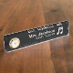 Custom music teacher desk name plate with music note icon. Personalise with name, title or funny quote. Elegant accessory for musician, music school teacher, piano or guitar teacher, instrument instructor, producer, singer, club, bar, disco, karaoke, dance theatre, entertainment manager etc. Customisable school and office supplies for men and women. Work related presents for him or her. Make your own nameplate sign. Black and white or custom colour. Includes small time clock.