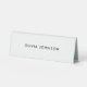 Simply add your custom name in the text area and it will be displayed on the front and back of this table tent sign.