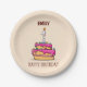 Custom Name, 1st Birthday, Sweet Pink Cake Paper Plate