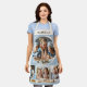 Custom Name 4 Photo Collage Elegant Blue Kitchen Apron