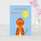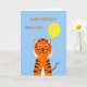 This fifth birthday card is bright and colourful, and ready for you to personalise by adding the birthday child's name on the front. The card features a smiling tiger with a yellow birthday balloon on a pale blue background, and there is a further birthday balloon inside.