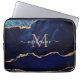 Custom Name Agate Blue Gold Marble Laptop Sleeve