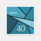 Host a fun 40th birthday party with modern teal geometric paper napkins. The fortieth milestone birthday party supplies feature "[custom name] is turning 40" in trendy white typography text on a background of geometric shapes in various shades of blue-green outlined in black. Customise the name and age in the sidebar.