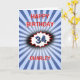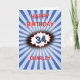 There is a vintage comic retro vibe to this eye-catching design with cool blue colors and images. The background is an explosion in blue, with a red-edged cloud burst to emphasize the number. You can edit the Happy Birthday greeting on the front, edit the number, change the name, and personalize the message inside as well. Currently this says "A birthday is just an excuse to eat more chocolate cake".