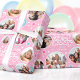 Celebrate a special birthday with custom photo gift wrap! This cute and stylish template is personalised with your child's name, age and six favourite photographs! A seamless pattern wrapping paper, featuring round picture frames, with a balloon, and stars. Printed colours: light pink, candy pink, turquoise and white.