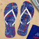 Custom name all over graphic text grey blue red thongs