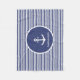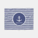 This blue and white blanket has horizontal stripes. In the centre, there is a white boat anchor and a place to enter the recipient's name. This personalised blanket is a nice addition to a kid's room.