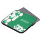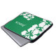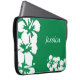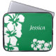 A pretty laptop sleeve with a custom White Hibiscus floral design on an Emerald Green background. Name can be changed with "Customise" option!