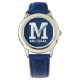 Custom Name and Monogrammed Bold Typography Blue Watch