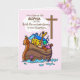 Noah’s Ark on a pink girl’s Baptism card is so precious. The animals are looking out of Noah’s Ark, seeing the cross through the clouds. Sweet card to give to a girl as she celebrates the anniversary of her Baptism. Customize the name and year on this card.