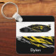 This keychain is shown in a black colour with a auto race car print design with a custom sample name.