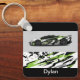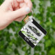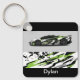 This keychain is shown in a black colour with a auto race car print design with a custom sample name.