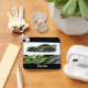 This keychain is shown in a black colour with a auto race car print design with a custom sample name.