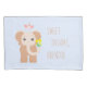 Baby Girl Pillowcase with custom name and sweet dreams wishing on the front side and loving words ("You are so loved") on the back side. Baby elephant smiling and handing flowers and pink birdie dancing on its head. Chocolate, blue, pink, yellow, green. Very lovely and cute.