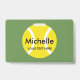 Custom name badges for tennis player and coach. Yellow tennis ball template design. Add your own name, surname, family name, last name, initial letters, title, function, etc. Classy badges for office personnel, staff, company employees, volenteers, coworkers, colleagues, corporate workers, teachers, trainers, business managers, teammates, instructor, boss, crew, members, friends, guests, etc.