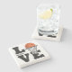 The coasters are gorgeous, a quality feel and heavy weight. They look like a precious archeological find. A rustic stone juxtaposed with a modern floral black and white print. I like the way the print goes slightly imperfect on the cut stone edges giving them a kind-of natural beauty.