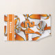 This team spirit hand towel for a basketball player features easy-to-personalise athlete name and jersey number plus team & mascot name overlying the background image of a bunch of randomly arranged orange and white basketballs on a white background. The basketballs are selectively shaded to give them a 3D appearance. The athlete's name can be personalised on horizontal orange varsity stripes at the bottom edge of the towel - by katz_d_zynes
