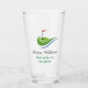 This best golfer beer glass is shown with a golf course graphic print and a sample custom name, customise this item and change the sample name to yours..