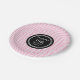 Customisable name and birthday year party plates in fun and chic baby pink, black and white retro chevron zigzag stripes pattern.