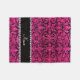 Trendy, girly, chic and pretty neon hot pink black damask glitter (FAUX NOT REAL GLITTER) floral flowers pattern background black diamonds stripe (faux diamonds, not real) with beautiful hearts and dots custom personalised with your name gifts or monogram gifts or your initials Ideal for weddings and much more featuring an elegant and traditional fancy lettering. Damask gift ideas for women.
