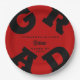 Custom Name Black on Scarlet Red Graduation Paper Plate