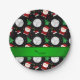 Custom name black volleyball christmas pattern paper plate