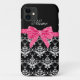 Custom name black white damask pink glitter bow Case-Mate iPhone case
