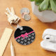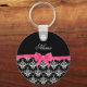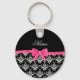 Custom name black white damask pink glitter bow key ring