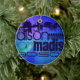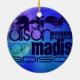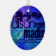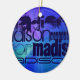 Custom Name; Blue & Abstract Purple, Green, Blue Ceramic Ornament