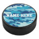 Custom name blue army camo hockey puck gift. Add your own name or monogram letters.