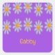 Custom name blue flowers on purple square sticker