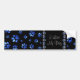 Custom name, blue glitter dog paws on black background.