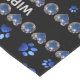 Custom name, blue glitter dog paws on black short table runner
