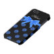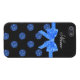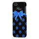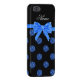 Black blue glitter polka dots (not real glitter) pattern background with a blue glitter bow (faux glitter, not real) ribbon personalised with your custom name gifts or monogram gifts or your initials featuring an elegant and traditional fancy lettering. Polka dot gift ideas.