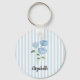 Custom Name Blue Hydrangea Painting Stripe Key Ring