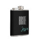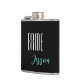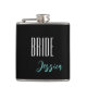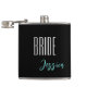 Flask for the bride is shown in black with teal and white text and has a sample name.