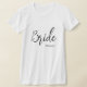 Women's t-shirt is shown in a crew neck and short sleeves style in white with black text: Bride and a custom sample name.