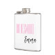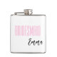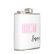 Flask for the bridesmaid is shown in white with pink and black text and has a sample name.