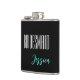 Flask for the bridesmaid is shown in black with teal and white text and has a sample name.